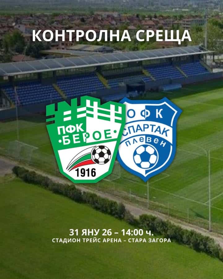 Приятелска среща. Като част от подготовката ни за подновяването на efbet Лига, тази събота ще изиграем приятелски мач срещу Спартак Плевен на стадион „Трейс Арена“.